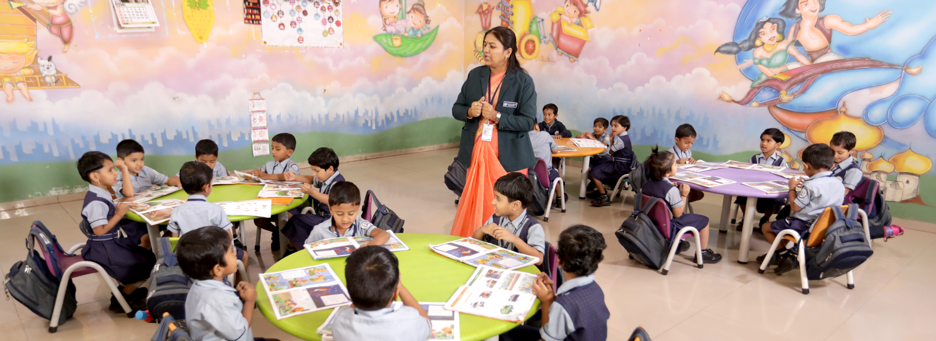There are about eight departments with two sections in each department. The students are taught English, Kannada, Hindi, Science, Mathematics, Social Science, Information Technology, Art, Music, Value Education, Health and Physical Education etc. The School has about 32 well-qualified faculties, and the faculty-student ratio is maintained at 1:5.